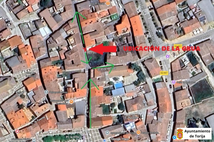 El Ayuntamiento de Torija informa de que, con motivo de una obra de rehabilitación autorizada en una vivienda particular, se producirán cortes de tráfico mañana en el centro del municipio. Las afecciones se concentrarán en las calles Puerta del Sol y General Aldeanueva, con el objetivo de garantizar la seguridad de peatones y vehículos durante el desarrollo de los trabajos.