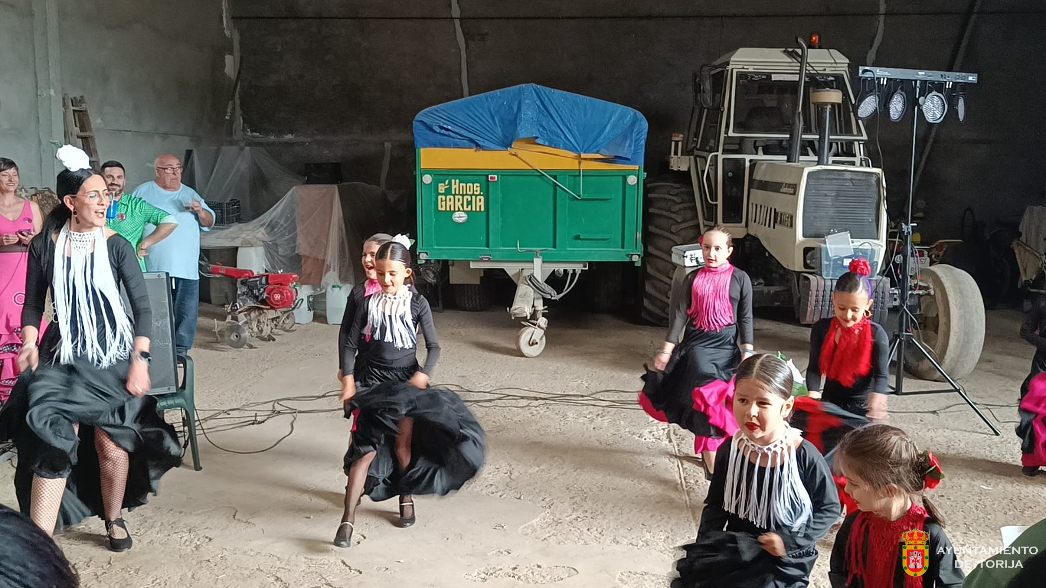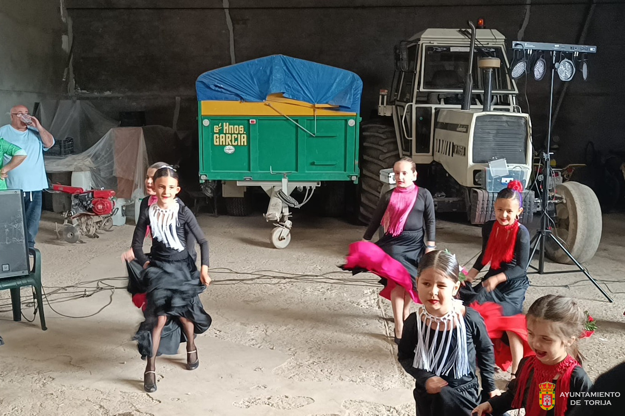 Por la tarde, la fiesta se trasladó a la nave de "Javi", a quien desde la organización quisieron agradecer y reconocer públicamente su generosidad. Allí, el grupo de flamenco de las actividades extraescolares organizadas por el AMPA "Castillo de Torija" ofreció una exhibición que levantó de las sillas a todos los presentes, demostrando el gran nivel y el progreso alcanzado durante el año bajo la dirección de su profesora Tamara.