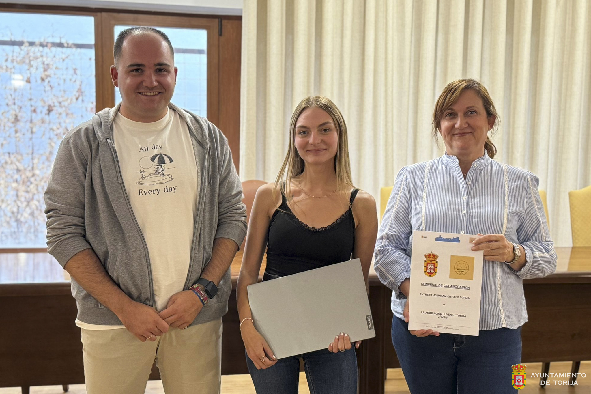El pasado viernes se rubricó el Convenio de Colaboración entre el Ayuntamiento de Torija y la recién refundada Asociación Juvenil “Torija Joven”, un paso fundamental para dotar a los jóvenes del pueblo de un organismo representante que vele por sus intereses y dinamice la vida social. Este acuerdo no solo formaliza el apoyo institucional, sino que se materializó con la entrega por parte del Consistorio de un ordenador portátil, un recurso esencial para facilitar a la asociación la realización de todo tipo de trámites y gestiones.
