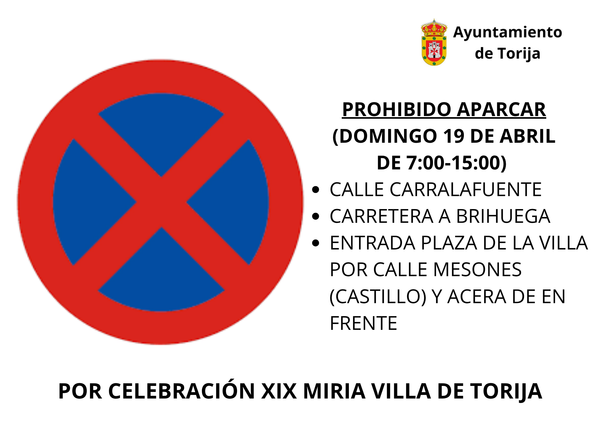 Prohibido aparcar en Calle Carralafuente desde las 08:00 h hasta las 13:00 h.